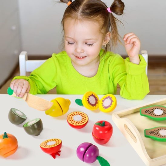 Bien plus qu'un simple jouet, notre dinette en bois contribue activement au développement de votre enfant. La manipulation des différentes pièces améliore la motricité fine tandis que la reconnaissance des fruits et légumes enrichit son vocabulaire et sa connaissance du monde. Avant, votre enfant connaissait à peine quelques fruits. Maintenant, il identifie pommes, oranges, bananes, kiwis et même aubergines tout en s'amusant!