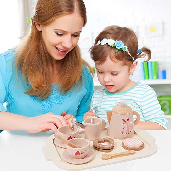 Cet ensemble complet comprend tous les éléments nécessaires pour que votre enfant organise de délicieux moments de partage fictifs :